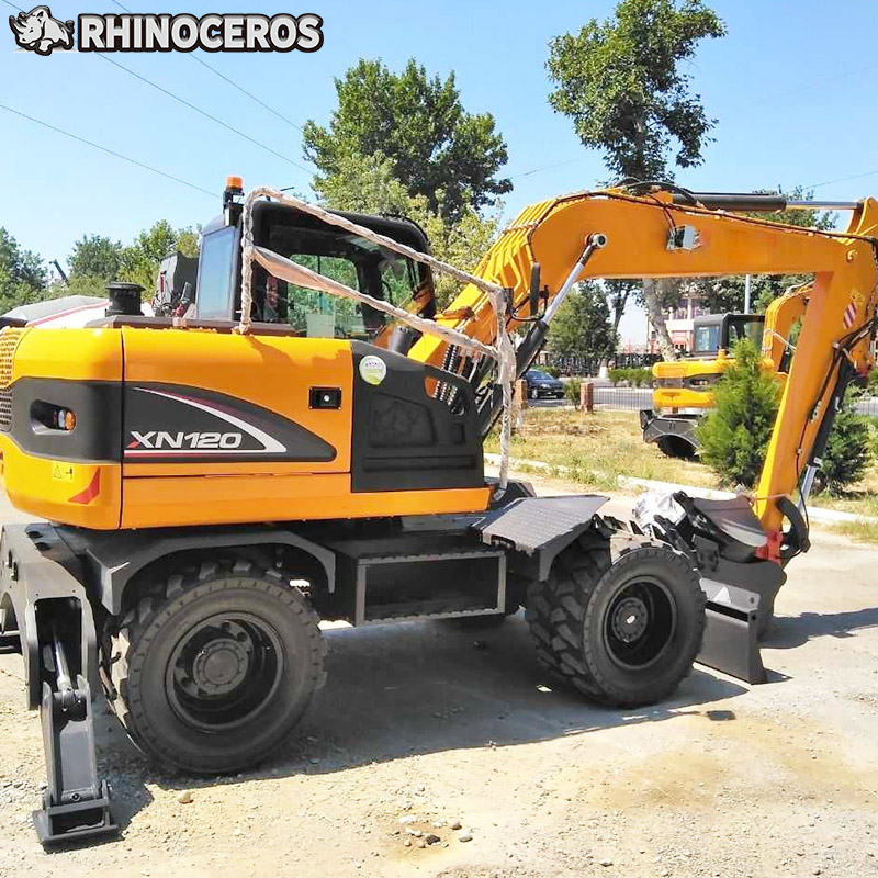 This is a 12 ton wheeled excavator specially tuned for clamping action, with different emission engines available for selection.